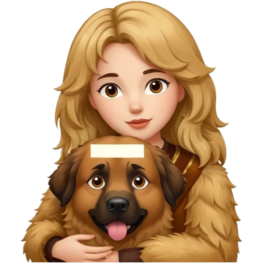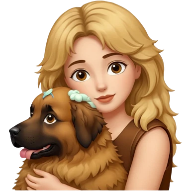 Ludo (ragazza mora capelli lisci) che abbraccia il suo cane leone (un barboncino biondo) emoji
