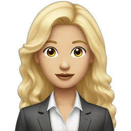 a young influencer with blonde hair and light eyes in a business suit emoji