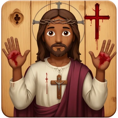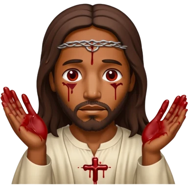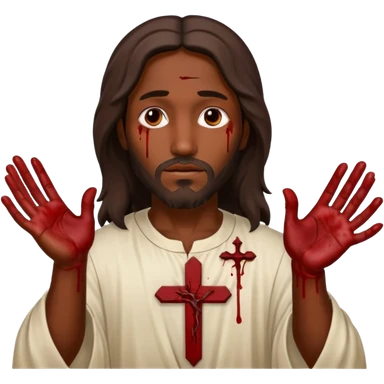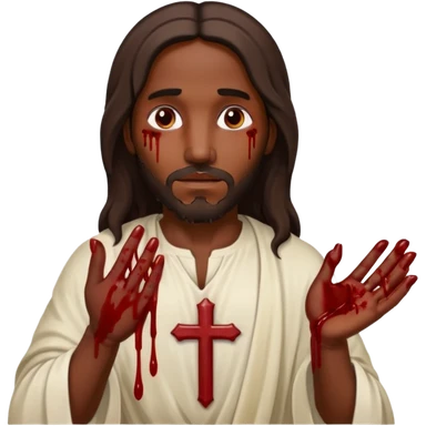 African American Jesus Christ with nail holes in his hands with blood emoji