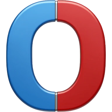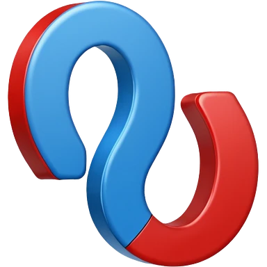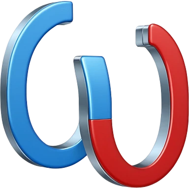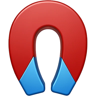 Horseshoe magnet emoji-style, vertical, split in half: left blue with “S”, right red with “N”, clean background. emoji