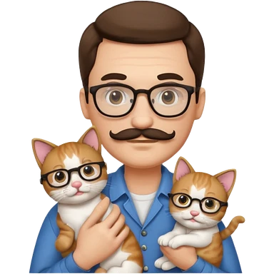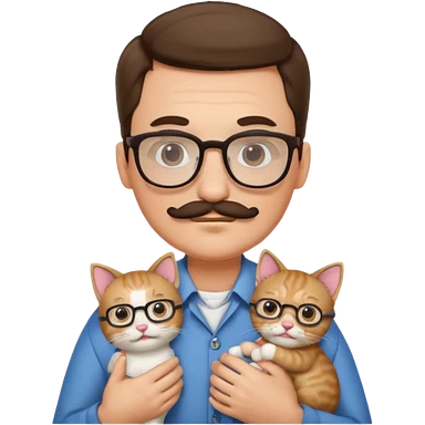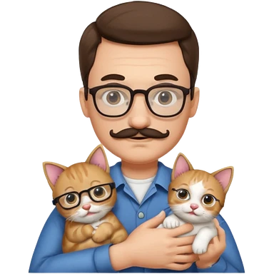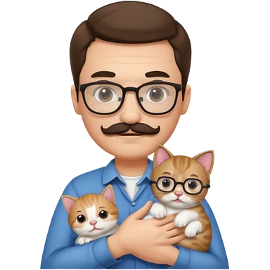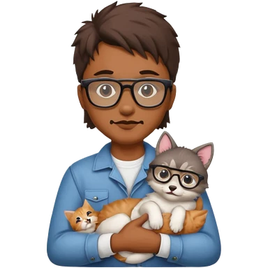 Glasses and mustach holding a kitten, the person should be brown and have a wolf cut mullet emoji