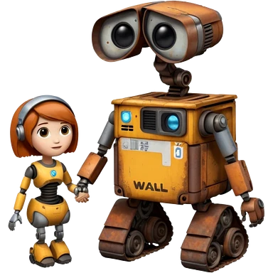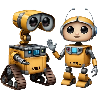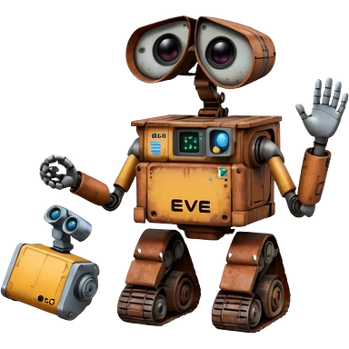 WALL E holding EVE a hand emoji
