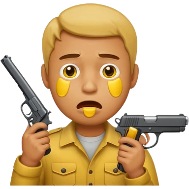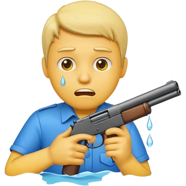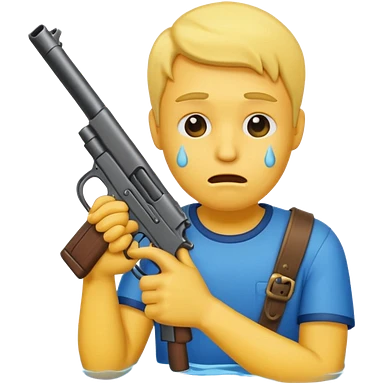 Make a yellow emoji of a guy holding a gun and the guns barrel is in his mouth while crying blue water emoji