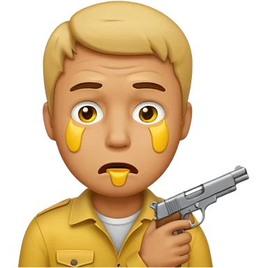 Make a yellow emoji of a guy holding a gun in his mouth while crying emoji