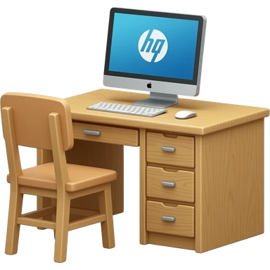 Small wooden desk with chair and hp computer emoji