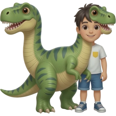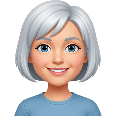 Asian grandma wearing blue tshirt with short white hair carrying brown terrier emoji