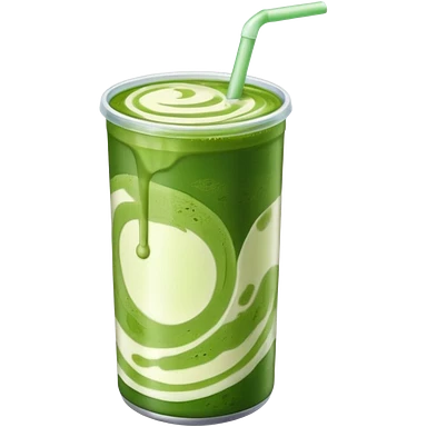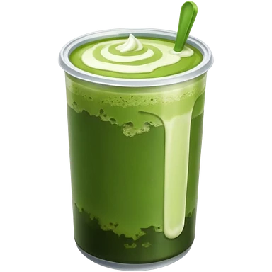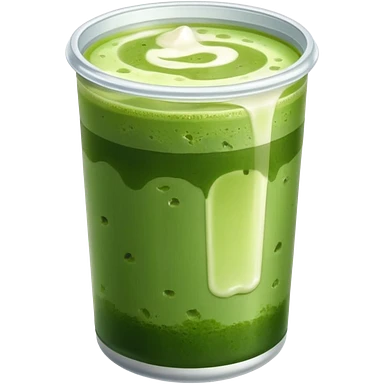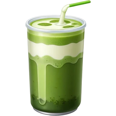 Iced matcha in a plastic can we can see the two color of mil and of matcha emoji