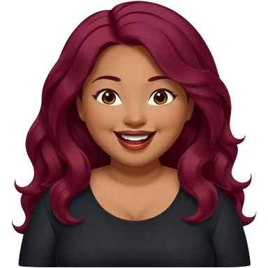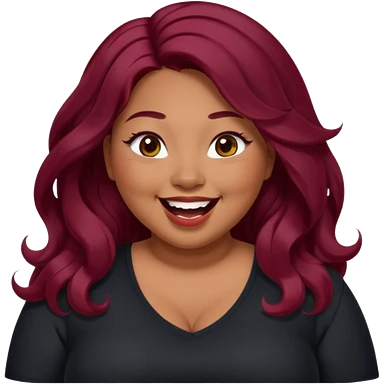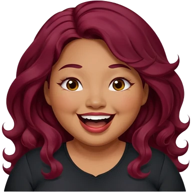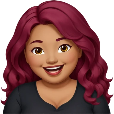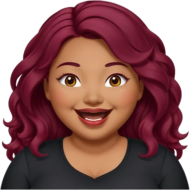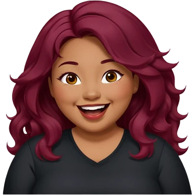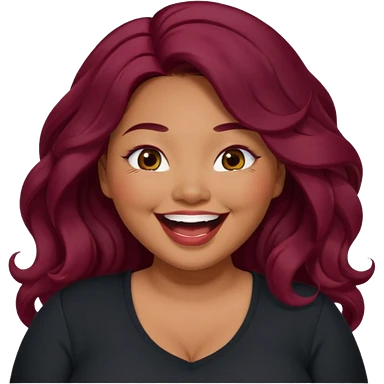 Plus size red hair brown face small eyes long hair Asian eyes small eyes wavy hair eye lashes burgundy hair black shirt laughing emoji