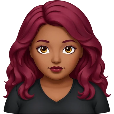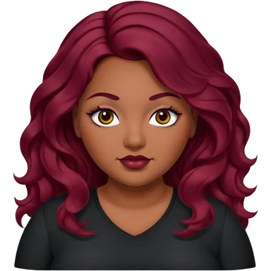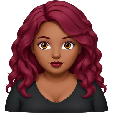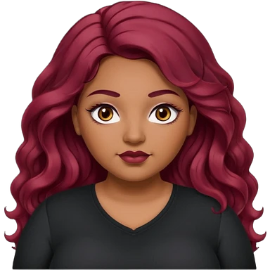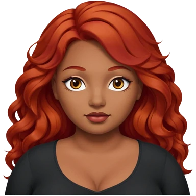 Plus size red hair brown face small eyes long hair Asian eyes small eyes wavy hair eye lashes burgundy hair black shirt emoji