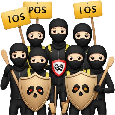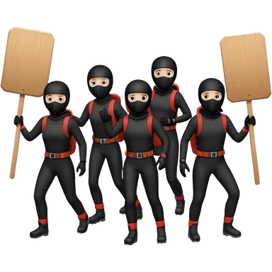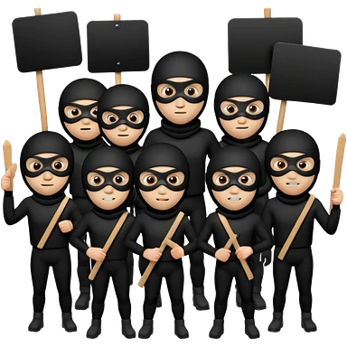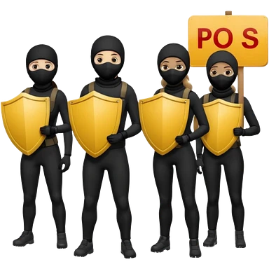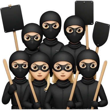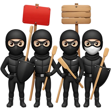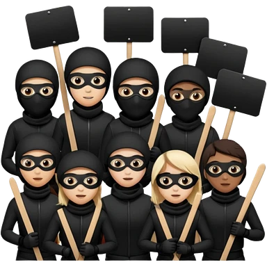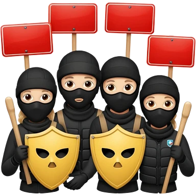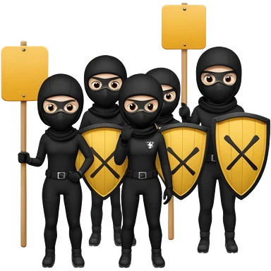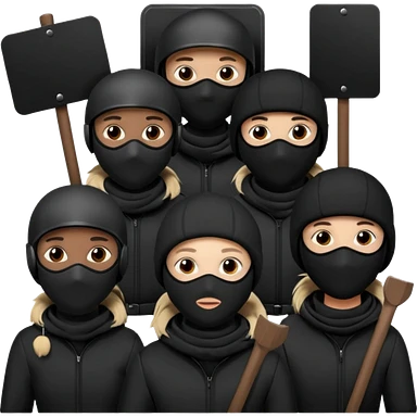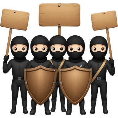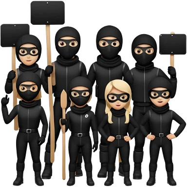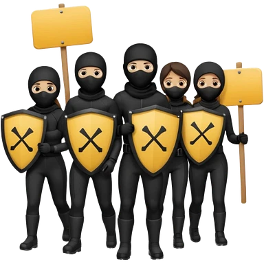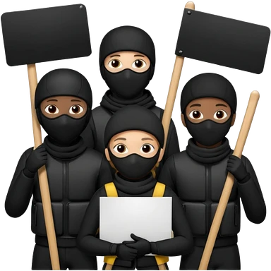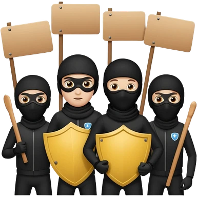 Ski mask people wearing black holding shields and signs emoji