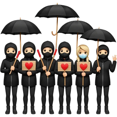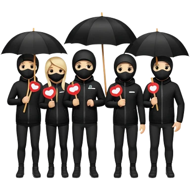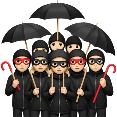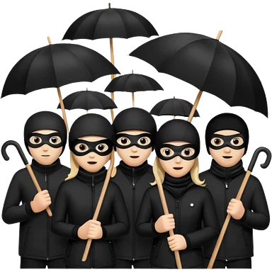 Ski mask people wearing black with umbrella and signs emoji