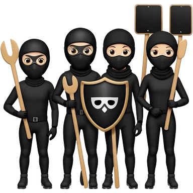 Ski mask people wearing black with shields and signs emoji