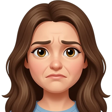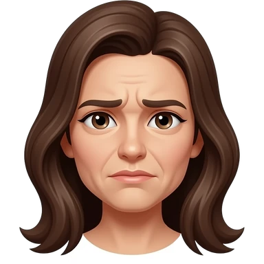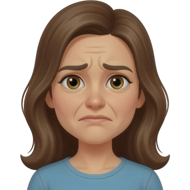 make the above emoji a female face with long brown hair with wrinkled nose emoji