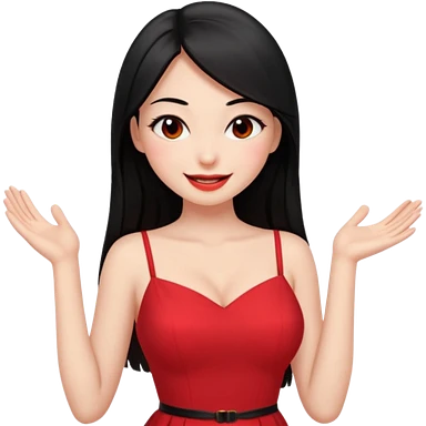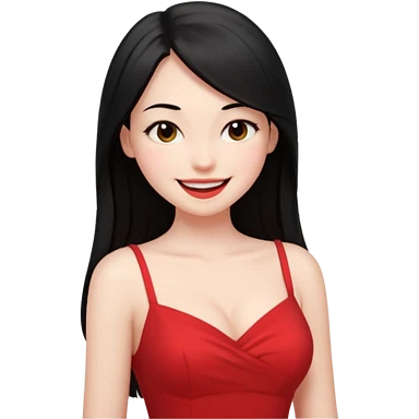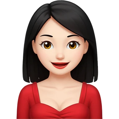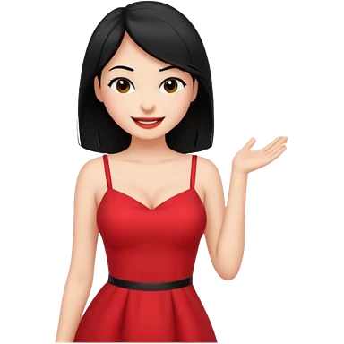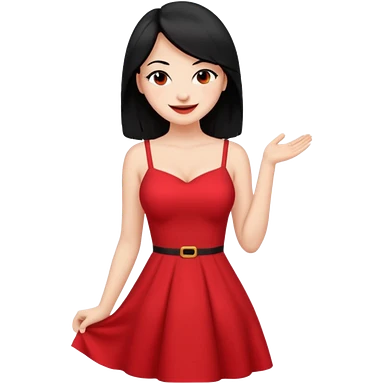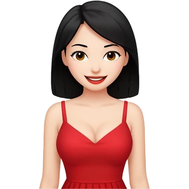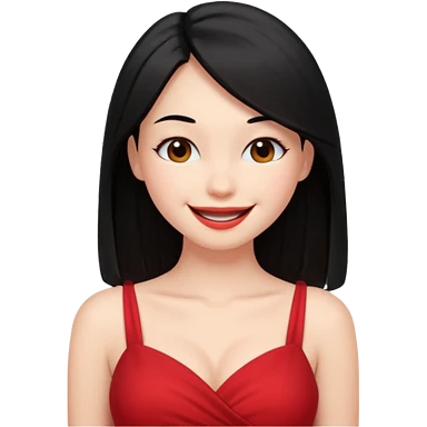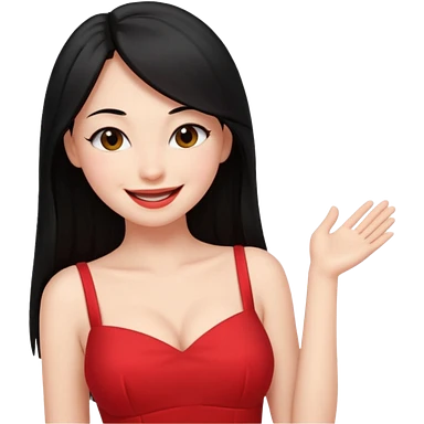 Chica joven pelo sémi largo color negro lacio delgada con con pechos grandes vestido rojo con sonrisa amigable y guiñando el ojo emoji