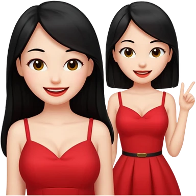 Chicas esbelta con falda corta negra y top rojo,pelo semi largo negro y lacio super feliz,pero bailando emoji