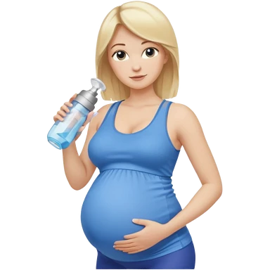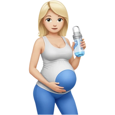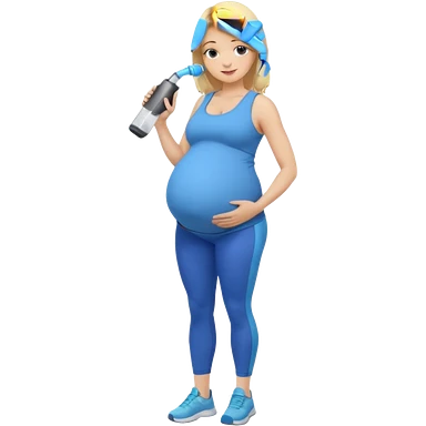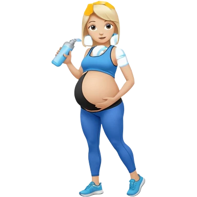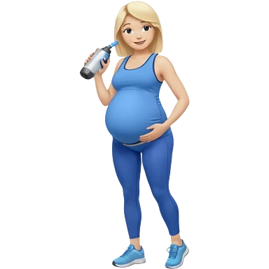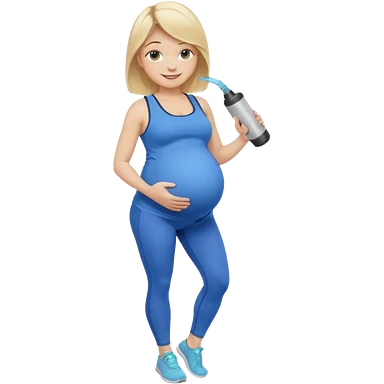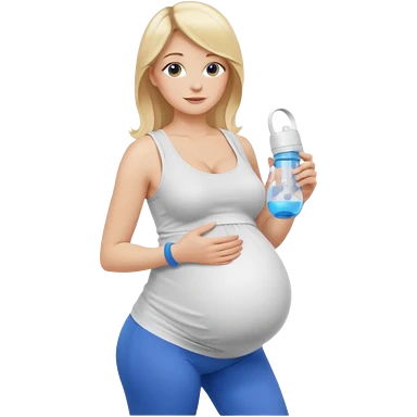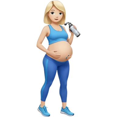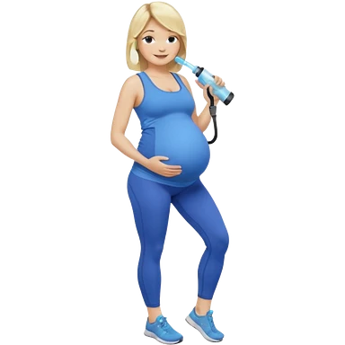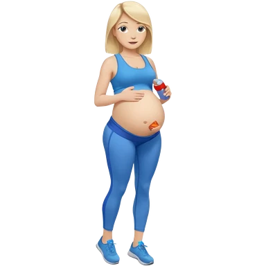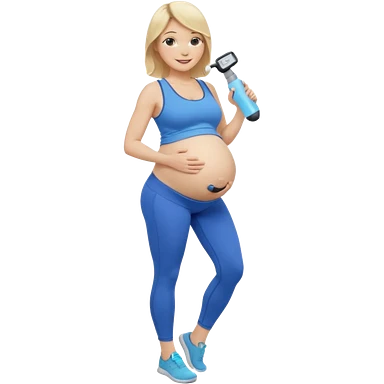 Woman blonde hair tank top blue leggings pregnant belly holding a pump bigger hips emoji