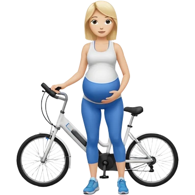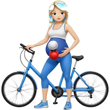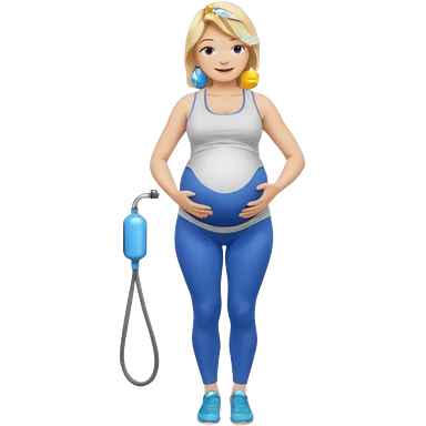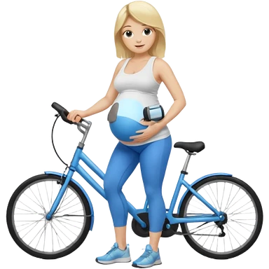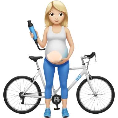 Woman blonde hair white tank top blue leggings pregnant belly holding a bike pump emoji