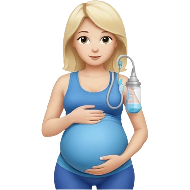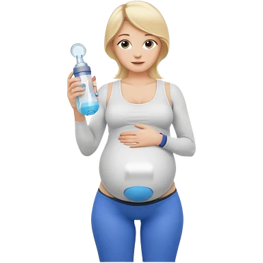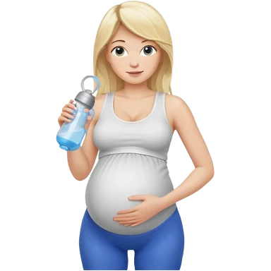 Woman blonde hair white tank top blue leggings pregnant belly holding a pump emoji