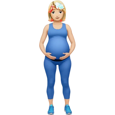 Woman blonde hair tank top blue leggings pregnant belly holding a pump emoji