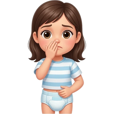 a 10yo girl wearing a nappy and a t shirt is covering her nose add reason why emoji