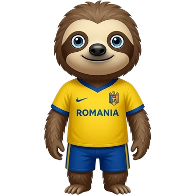 Un perezoso con los ojos separados con forma de persona con la camiseta de la seleccion de Rumania emoji