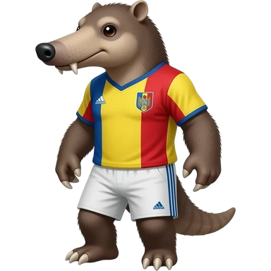 Un perezoso terrestre prehistórico con forma de persona con la camiseta de la seleccion de Rumania emoji