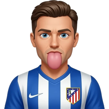Una persona con la camiseta de la Real Sociedad escupiendo el escudo del Atletico emoji