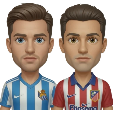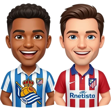 Una persona con la camiseta de la Real Sociedad riendose de la otra persona con la camiseta del Atletico de Madrid emoji