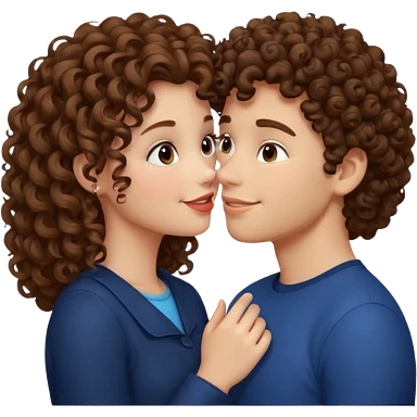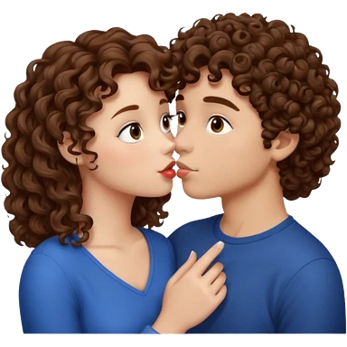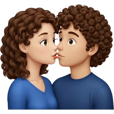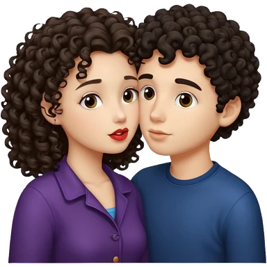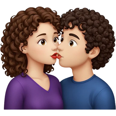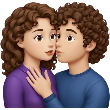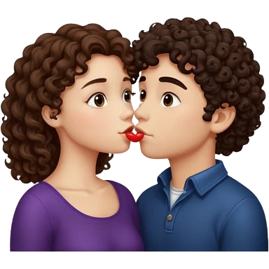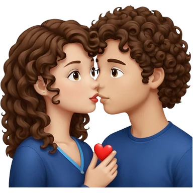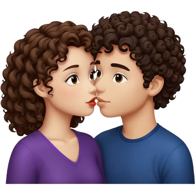 A girl with curly hair and a boy with haïr brun kiss emoji