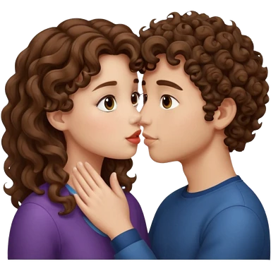 A girl with curly hair and a boy with wavy hair kiss emoji