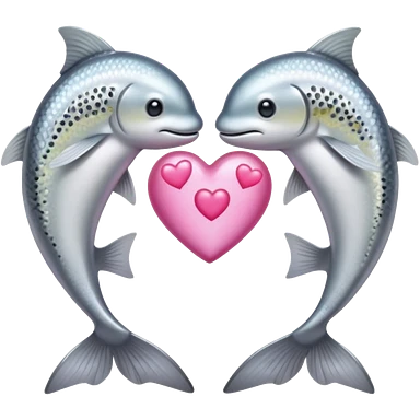 two trouts with a heart between them emoji