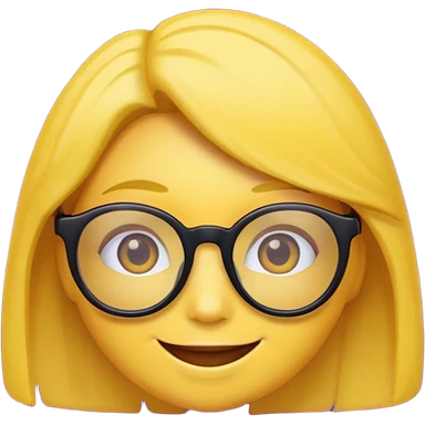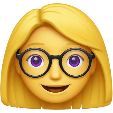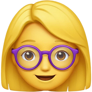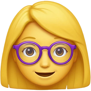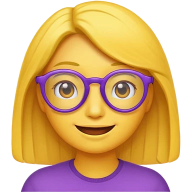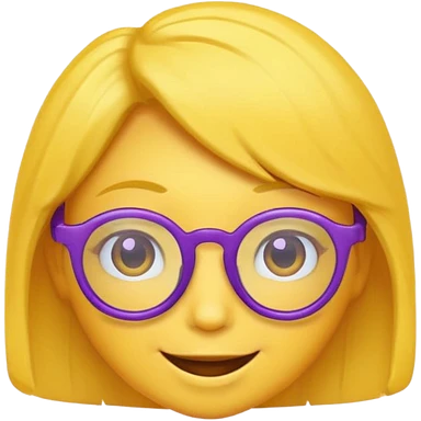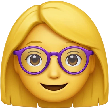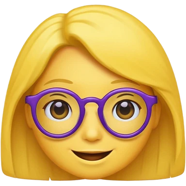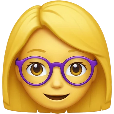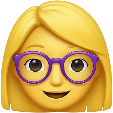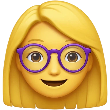 un emojis amarillo, con el cabello corto y lacio, con lentes violeta y una sonrisa emoji