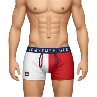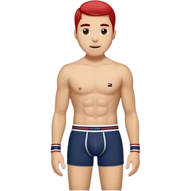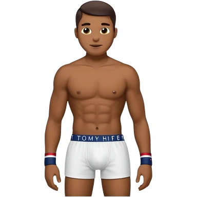 Rapaz branco cabelos escuros usando cueca Boxer Tommy Hilfiger emoji