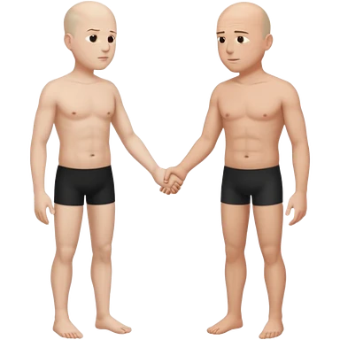 Dois rapazes brancos, um de cabelo escuro e outro sem cabelo, um de frente para o outro, sem roupas, um segurando a mão do outro emoji