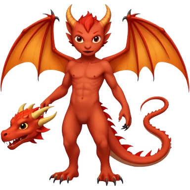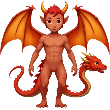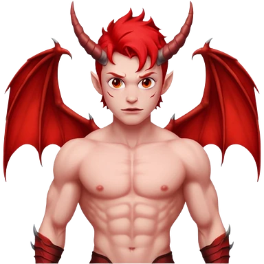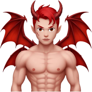 Young, skinny, full-body, red, naked devil with dragon wings. emoji