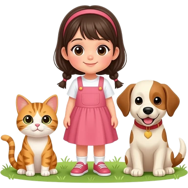 A little girl next to her little cat with a puppy and they’re at the park emoji