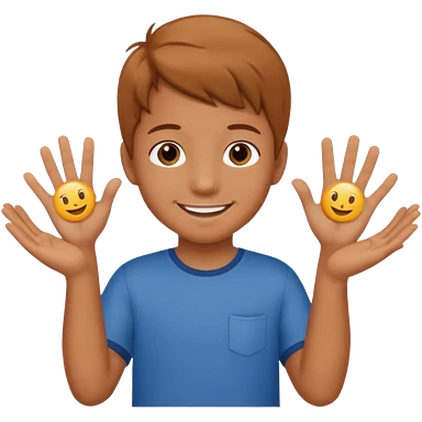 kid with tan hair and holding a six in his hand and a seven and the other hand emoji