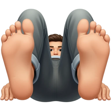 laying on back, legs bent, feet up showing butthole circle shaped emoji