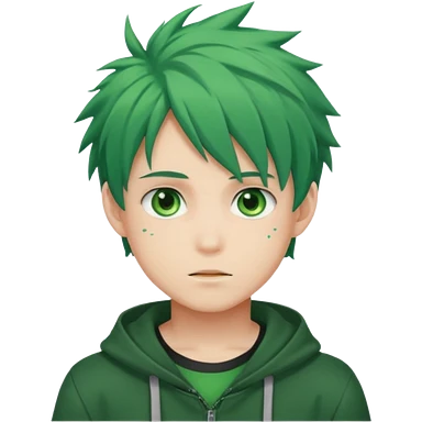 deku : boy anmie green hair green eyes in a ua suit with frenkles emoji