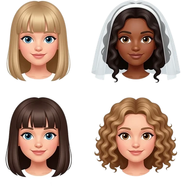 una ragzza capelli lisci bianca, una ragazza scura con il velo, una riccia chiara emoji