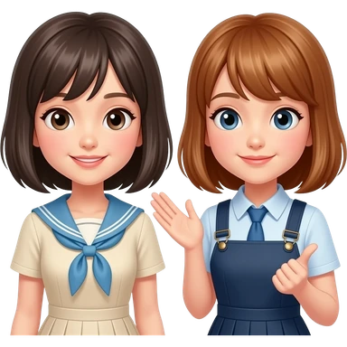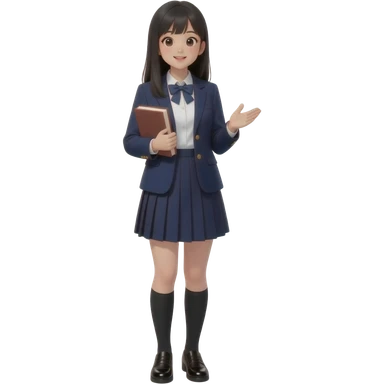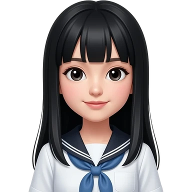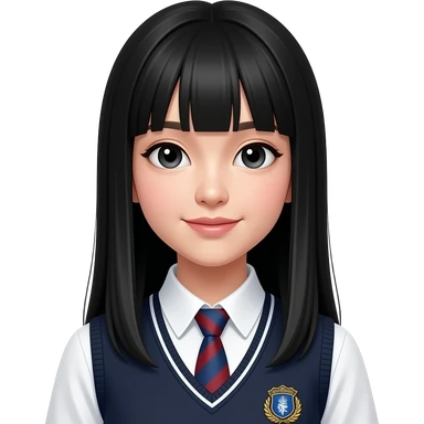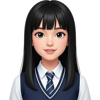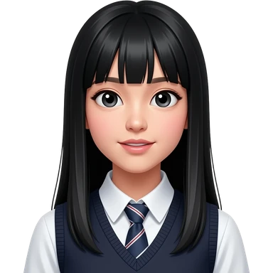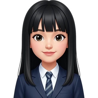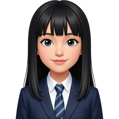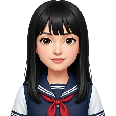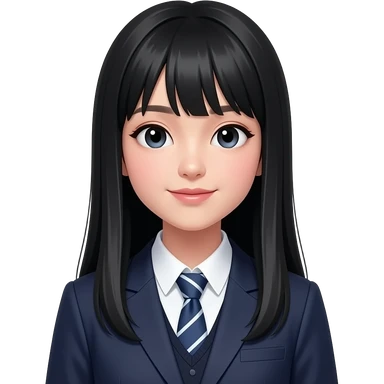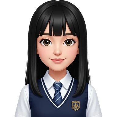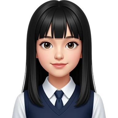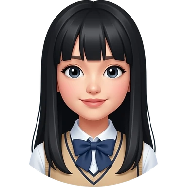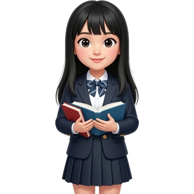 talking trendy schoolgirl with Asian skin, straight black long hair, chic uniform emoji
