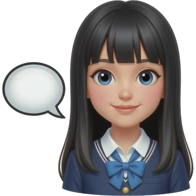 trendy schoolgirl with Asian skin, straight black long hair, and speach bubble emoji