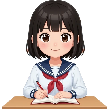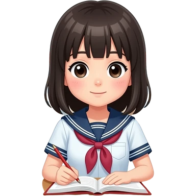 japanese school girl writing diary emoji