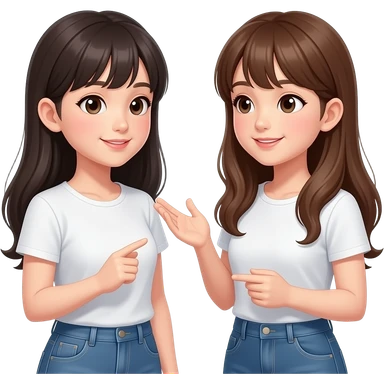 asian and european girls with english conversation emoji