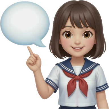 trendy schoolgirl with Asian skin, straight black long hair, chic uniform, speach bubble emoji