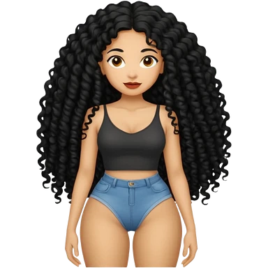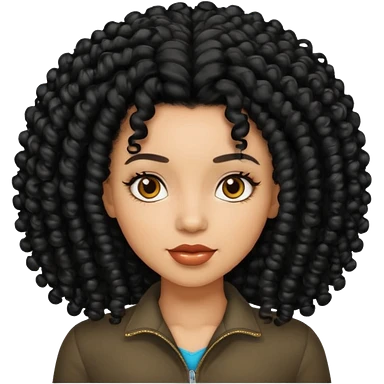 Uma mulher negra da pele clara com cabelo cacheados bem longo até a bunda emoji
