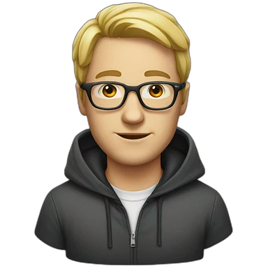Homme blanc avec une capuche sur la tête et des lunettes emoji