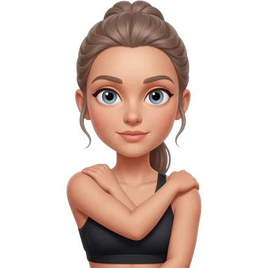 gentle shoulder rolls, fair-skinned woman, light gray-blue eyes, ash brown brows, ash light brown hair tied back, slim athletic body, black workout set emoji