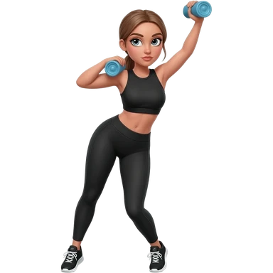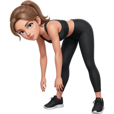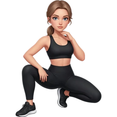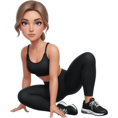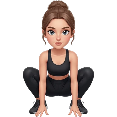 squat to reach, fair-skinned woman, light gray-blue eyes, ash brown brows, ash light brown hair tied back, slim athletic body, black workout set emoji