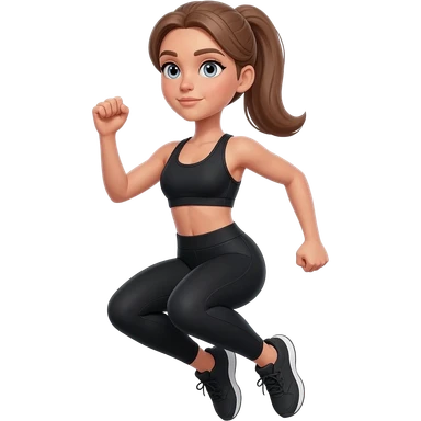 jumping jacks, fair-skinned woman, light gray-blue eyes, ash brown brows, ash light brown hair tied back, slim athletic body, black workout set emoji